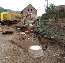 Úvod > Reference > Vodovodní a kanalizačních přípojky / hlavní řady > Sebuzín Sebuzín << ZPĚT Provedení dešťové kanalizace (materiál kamenina) a osazení dešťových vpustí.